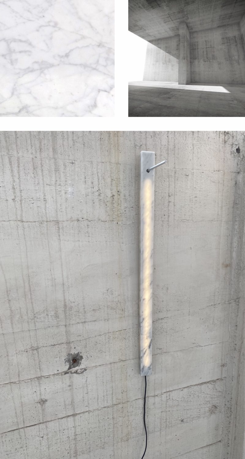 Armatuur VEIN is een tijdloos ontwerp met een eenvoud in vorm en elegantie door het materiaalverbruik. De rib van natuursteen is een minimalistisch object aan de wand. Is het licht aan, schijnt deze subtiel door het materiaal heen. De nerven tekening maakt iedere lamp uniek. VEIN-I is te zien te koop in mijn Studio.